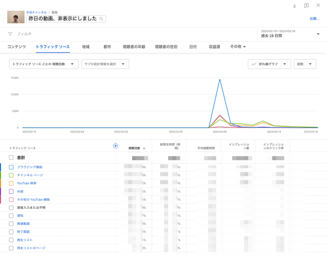 先ほども触れましたが、ある動画がいつも以上に伸びた際その原因がどこにあるのかはアナリティクスを用いないと確認できません。