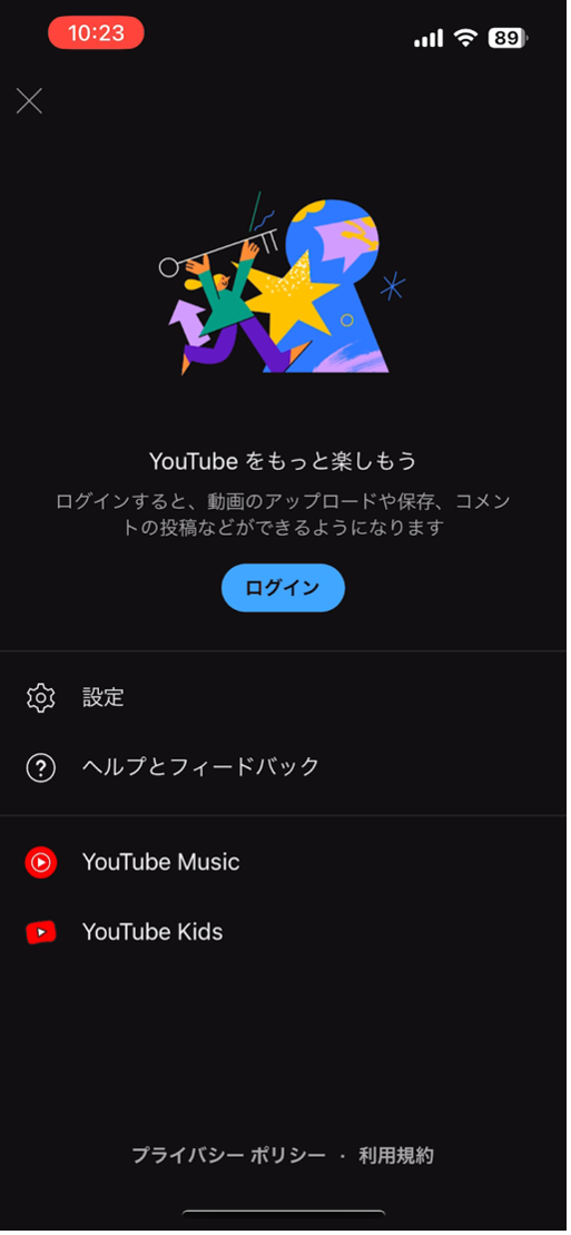 まず youtube.com にアクセスし、右上にある「ログイン」ボタンをクリックします。