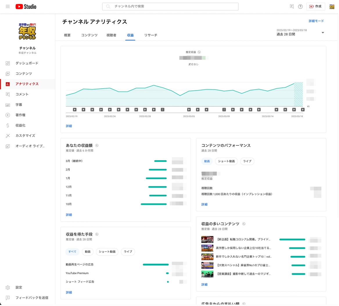 他にも収益について、あらゆる動画の投稿後1週間での広告表示回数を確認したり、広告ごとの収益を計算したりといった確認の必要性は薄いでしょう。