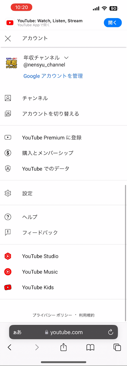 もしYouTube Studioをインストールされていない場合、このようにストアページが下から出てきてインストールを促す画面にます。