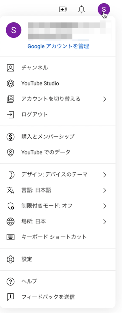 すると先ほど「ログイン」ボタンだった右上が、ご自身のチャンネルアイコンへと変更されているかと存じます。