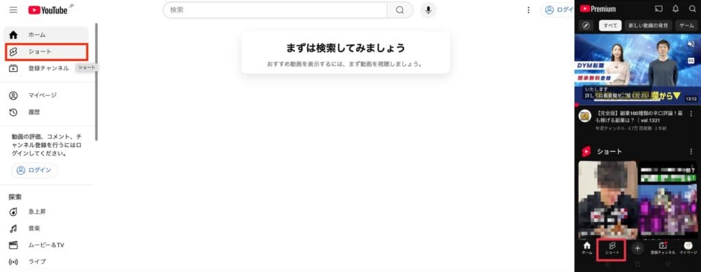 PCではTOPページの「ショート」タブから、スマホではアプリ下部の「ショート」アイコンから簡単にアクセスできます(上記の図解を参照)。