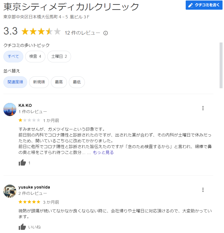 たとえばサイトのSEO対策や、広告の運用の施策を行い、貴院の認知が広がったとしても、Googleマイビジネスなどに口コミが一切ない場合、ユーザーは貴院に来院することをためらう場合があります。