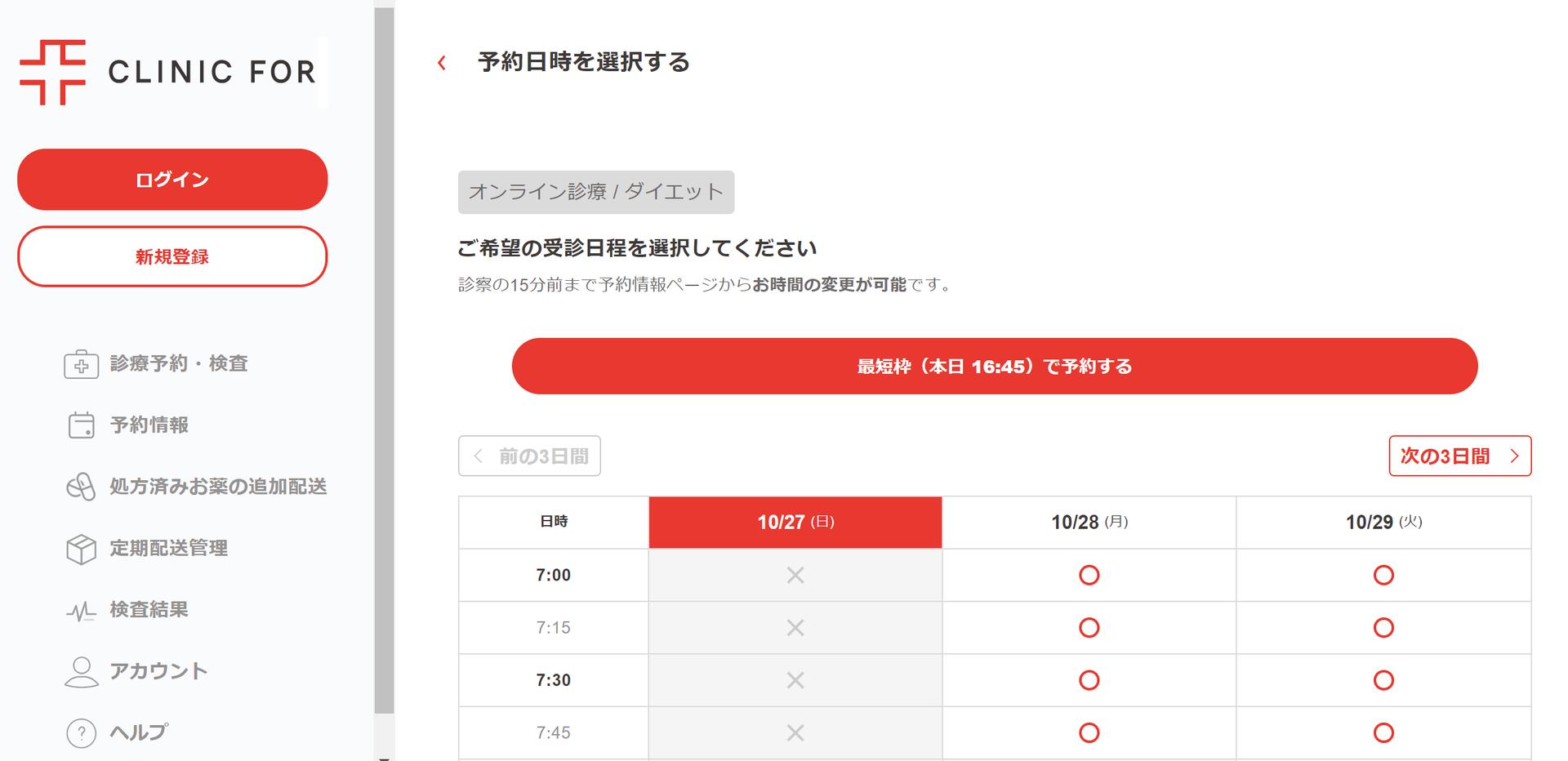 クリニックフォア予約ページ(https://miniapp.clinicfor.life/)