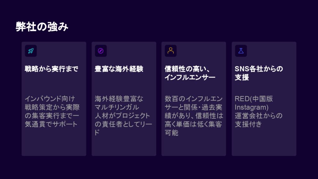 - RED(中国版Instagram)運営会社と日々直接のやりとりがありますので、細かな質問や変化にすぐに対応できます。