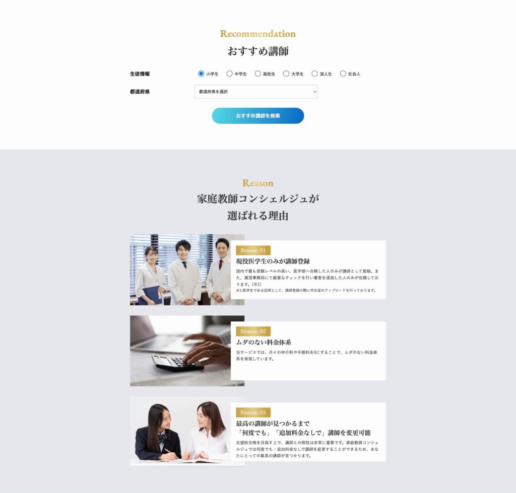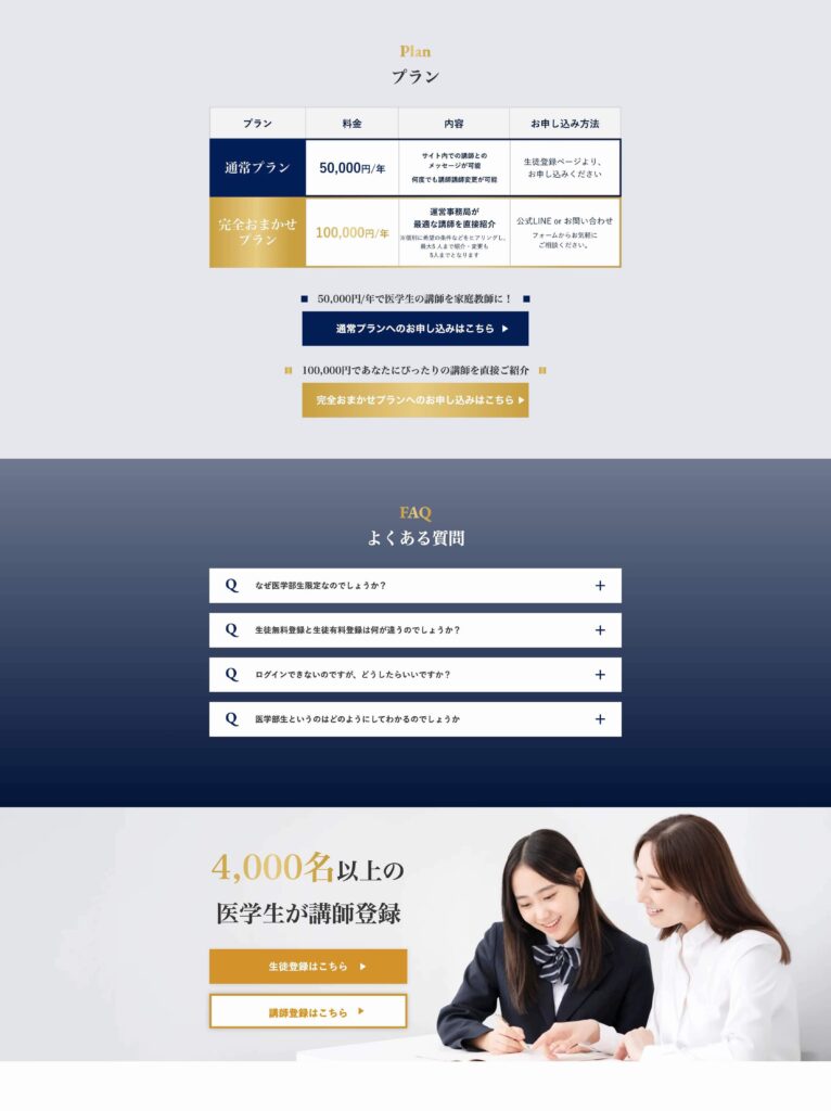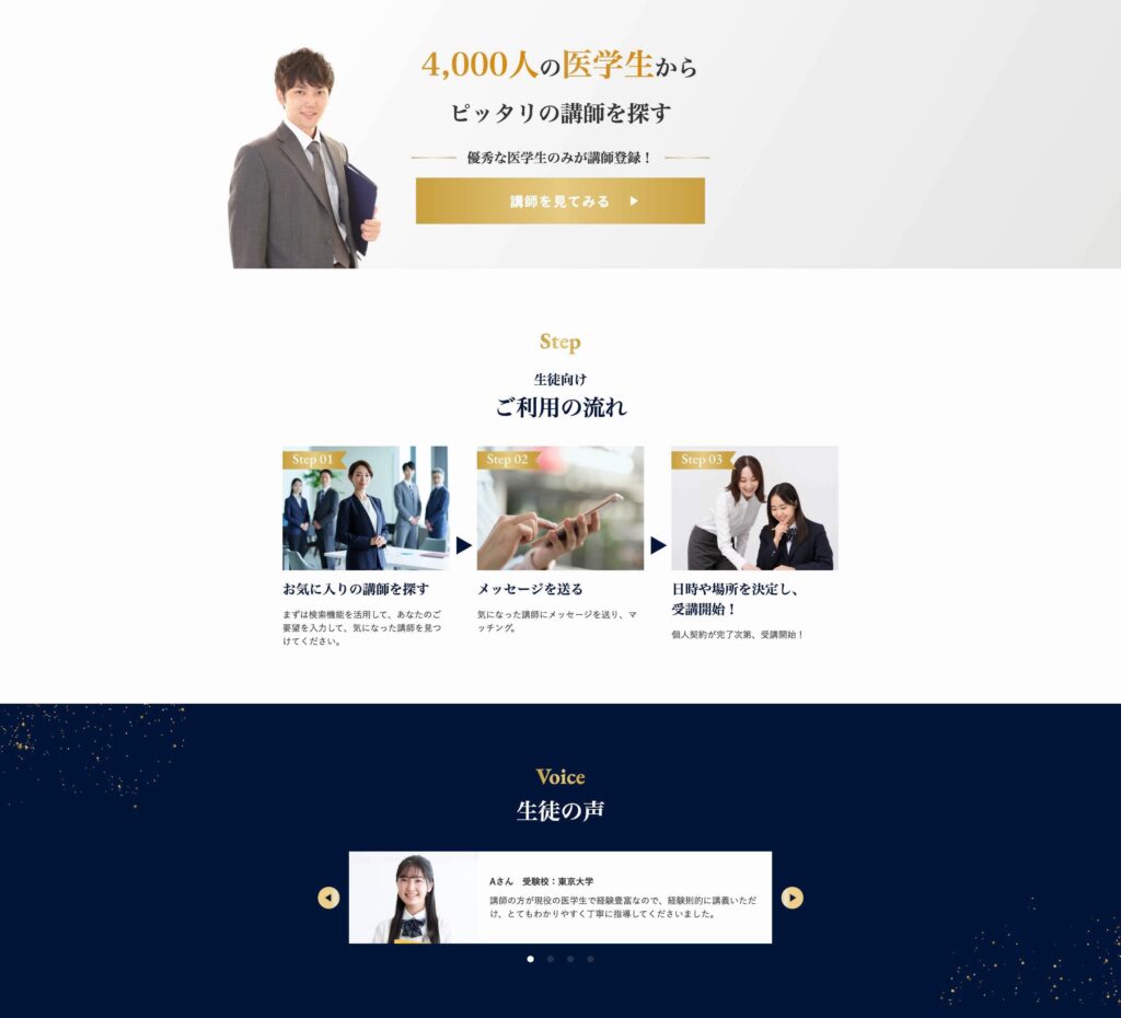 医学部志望の学生(親)と医学部生(講師)のマッチングプラットフォーム